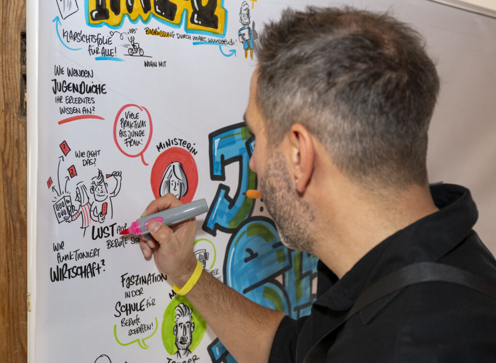 Für den Input sorgte eine Keynote von Jan Boskamp, JOBLINGE – „Was hält junge Menschen vom Schritt in die Ausbildung ab?“